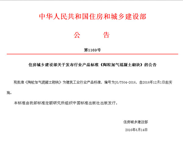 《陶粒加(jiā)氣混凝土砌(qi)杨辰秦惜完🔞结版🚩塊》JG/T504-2016行業标準(zhǔn)